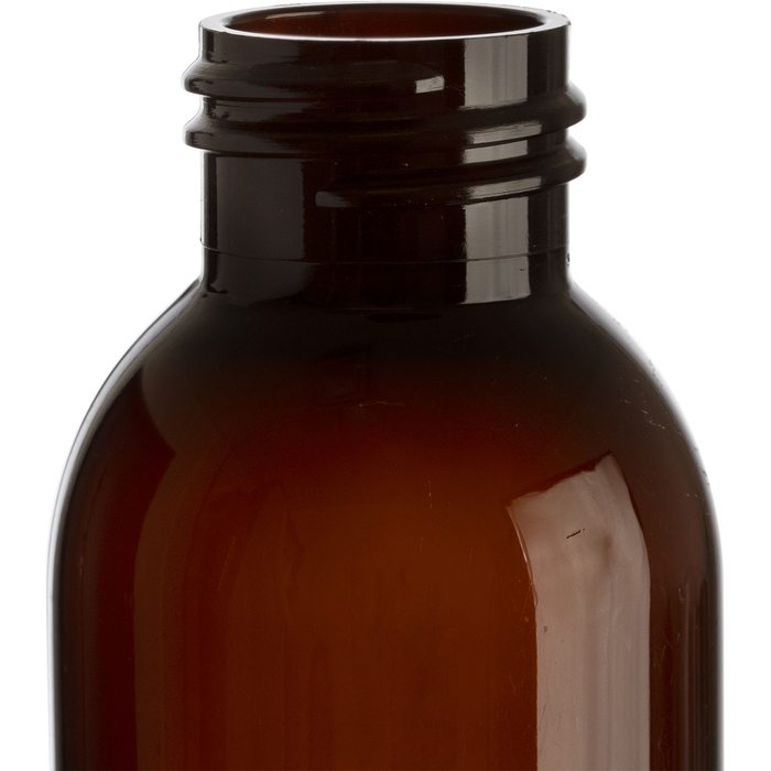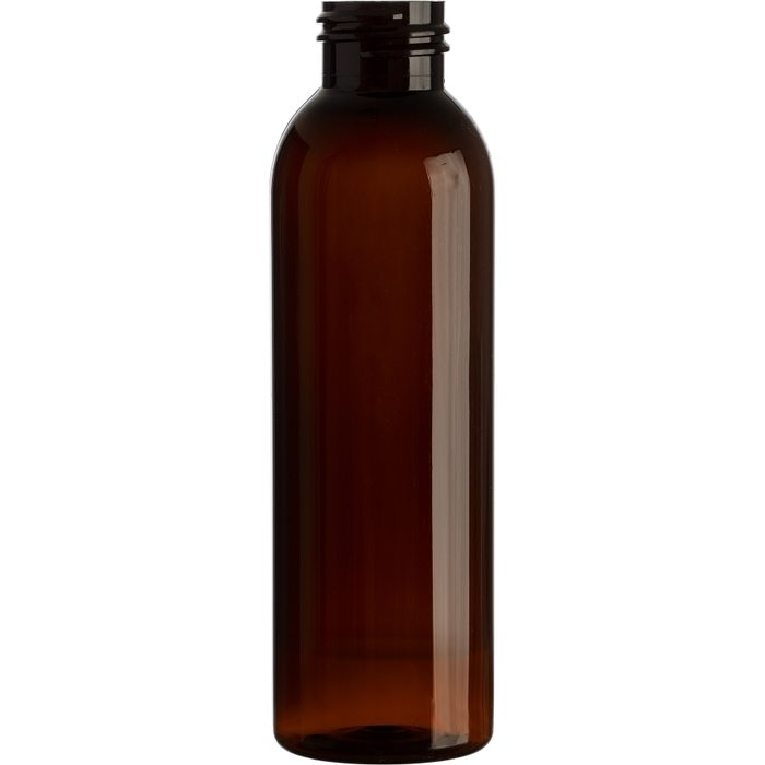 This 4 oz(120ml) light amber PET (Polyethylene Terephthalate) plastic bullet round bottle features a 24mm (24-410) neck finish. This versatile plastic bottle can package a wide variety of products including cold-fill beverages, condiments and marinades, salts and spices, hair and body care products, cleaning products, and more. The bullet bottle features a classic, simple design that is easy to label or screen print.